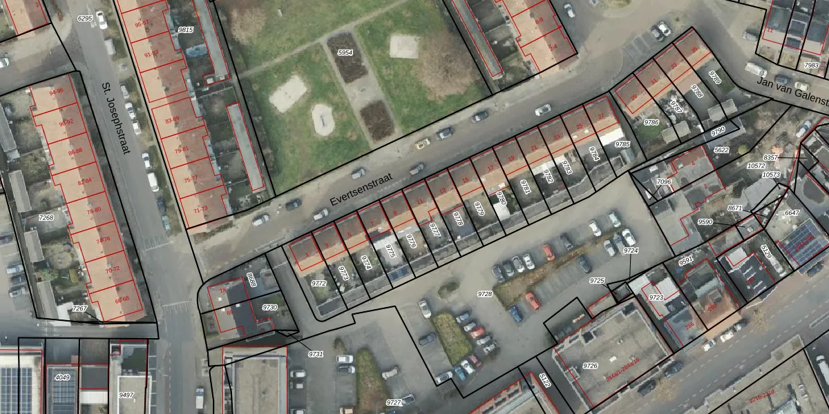 Evertsenstraat 11 is gelegen op kadastraal perceel AML01B9777. Deze kadastrale aanduiding is uniek en wordt gebruikt door het Kadaster om eigendomsrechten en andere zakelijke rechten vast te leggen. Het perceel maakt onderdeel uit van de kadastrale gemeente Ambt-Almelo.