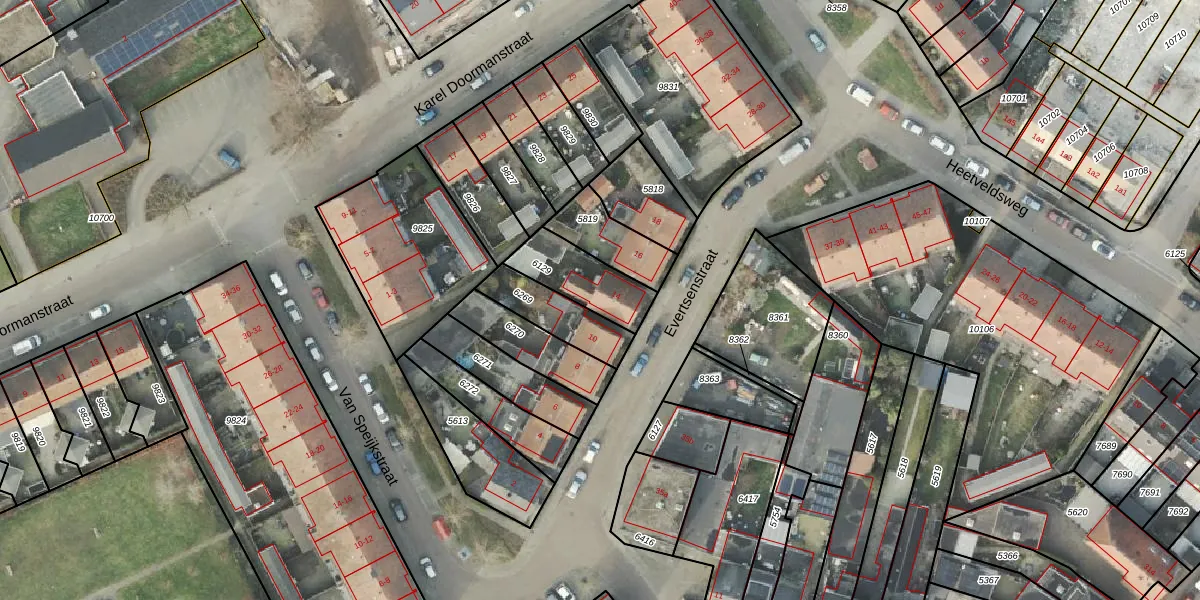Het perceel waarop Evertsenstraat 14 staat heeft een oppervlakte van 182 m². Dit is een middelgroot perceel. De perceeloppervlakte wordt geregistreerd door het Kadaster. Gedetailleerde informatie over de maten van dit perceel kunt u vinden in het rapport Kadastrale kaart met maatvoering van Evertsenstraat 14.