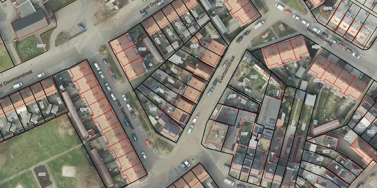 Evertsenstraat 8 is gelegen op kadastraal perceel AML01B6270. Deze kadastrale aanduiding is uniek en wordt gebruikt door het Kadaster om eigendomsrechten en andere zakelijke rechten vast te leggen. Het perceel maakt onderdeel uit van de kadastrale gemeente Ambt-Almelo.
