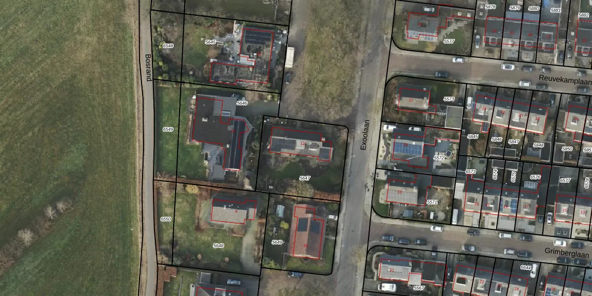 Gebruik de zoekbalk of klik op een perceel voor informatie over de adressen binnen dit perceel.