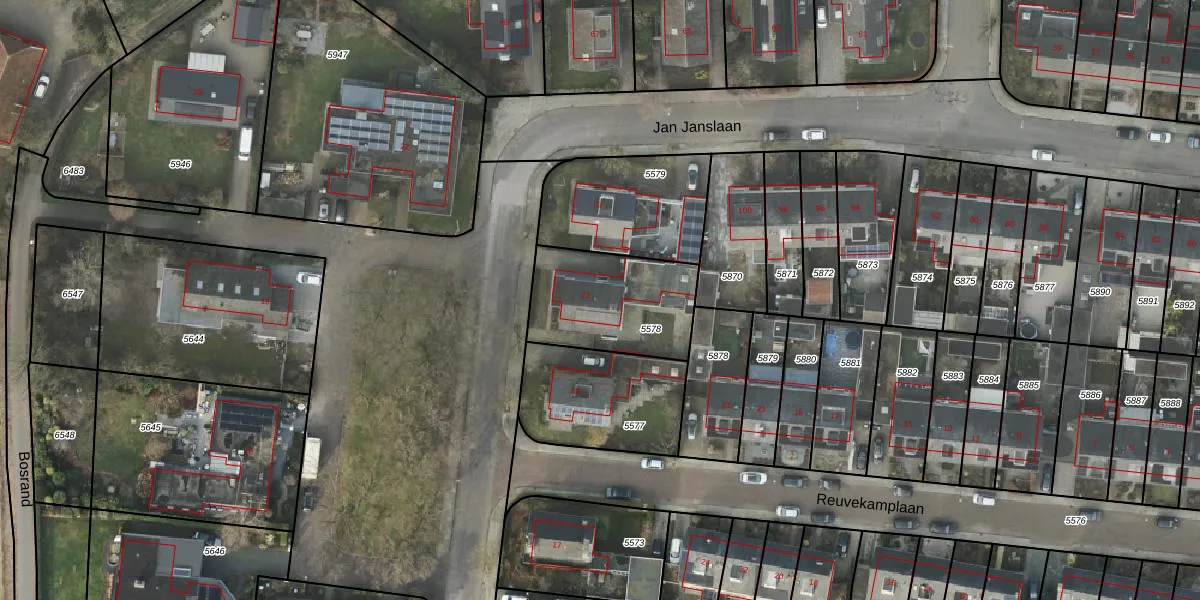 Gebruik de zoekbalk of klik op een perceel voor informatie over de adressen binnen dit perceel.