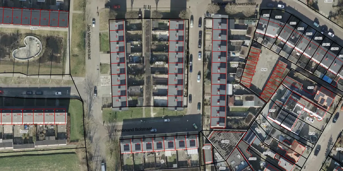 Het perceel waarop Ferdinand Bolstraat 13 staat heeft een oppervlakte van 2310 m². Dit is een zeer groot perceel. De perceeloppervlakte wordt geregistreerd door het Kadaster. Gedetailleerde informatie over de maten van dit perceel kunt u vinden in het rapport Kadastrale kaart met maatvoering van Ferdinand Bolstraat 13.