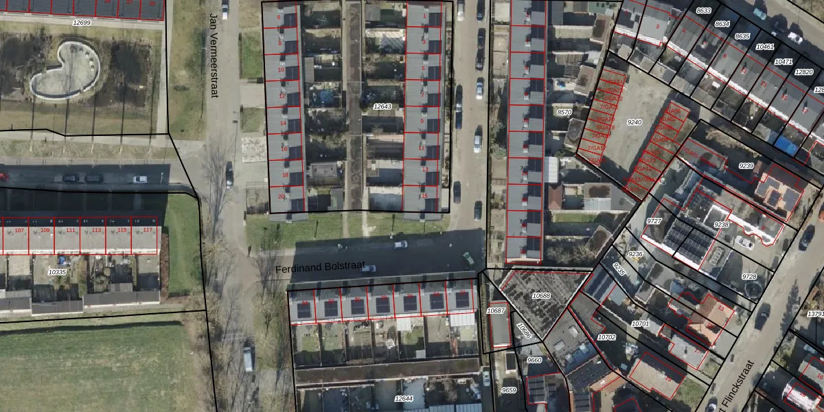 Het perceel waarop Ferdinand Bolstraat 15 staat heeft een oppervlakte van 2310 m². Dit is een zeer groot perceel. De perceeloppervlakte wordt geregistreerd door het Kadaster. Gedetailleerde informatie over de maten van dit perceel kunt u vinden in het rapport Kadastrale kaart met maatvoering van Ferdinand Bolstraat 15.