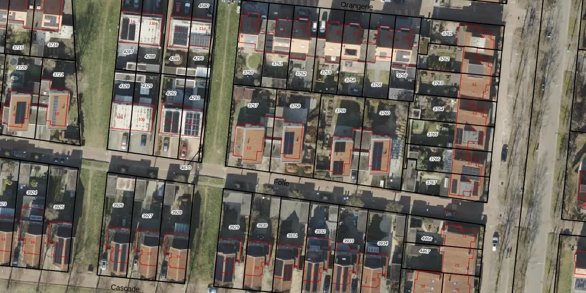 Folie 14 is gelegen op kadastraal perceel AML01G3758. Deze kadastrale aanduiding is uniek en wordt gebruikt door het Kadaster om eigendomsrechten en andere zakelijke rechten vast te leggen. Het perceel maakt onderdeel uit van de kadastrale gemeente Ambt-Almelo.