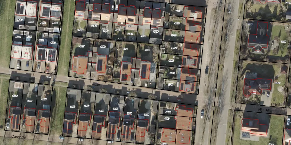 Folie 18 is gelegen op kadastraal perceel AML01G3760. Deze kadastrale aanduiding is uniek en wordt gebruikt door het Kadaster om eigendomsrechten en andere zakelijke rechten vast te leggen. Het perceel maakt onderdeel uit van de kadastrale gemeente Ambt-Almelo.