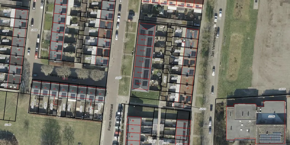 Frans Halsstraat 82 is gelegen op kadastraal perceel AML01H9187. Deze kadastrale aanduiding is uniek en wordt gebruikt door het Kadaster om eigendomsrechten en andere zakelijke rechten vast te leggen. Het perceel maakt onderdeel uit van de kadastrale gemeente Ambt-Almelo.