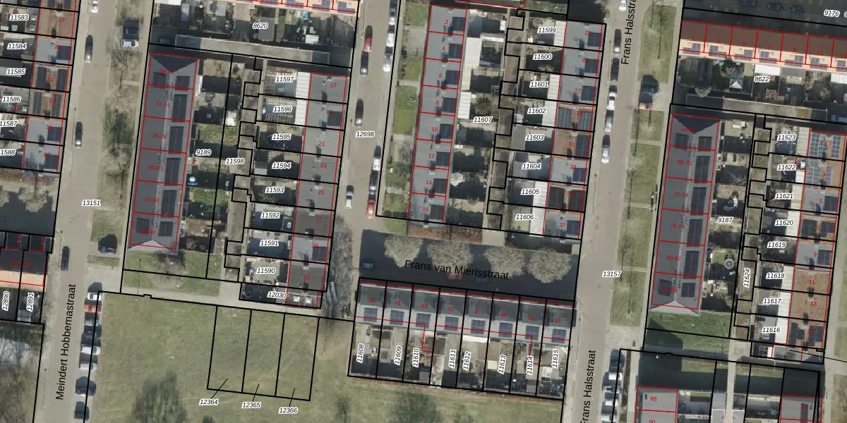 Het perceel waarop Frans van Mierisstraat 16 staat heeft een oppervlakte van 1642 m². Dit is een zeer groot perceel. De perceeloppervlakte wordt geregistreerd door het Kadaster. Gedetailleerde informatie over de maten van dit perceel kunt u vinden in het rapport Kadastrale kaart met maatvoering van Frans van Mierisstraat 16.