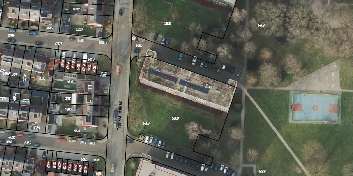 Frerikshuislaan 125 is gelegen op kadastraal perceel AML01A7334. Deze kadastrale aanduiding is uniek en wordt gebruikt door het Kadaster om eigendomsrechten en andere zakelijke rechten vast te leggen. Het perceel maakt onderdeel uit van de kadastrale gemeente Ambt-Almelo.