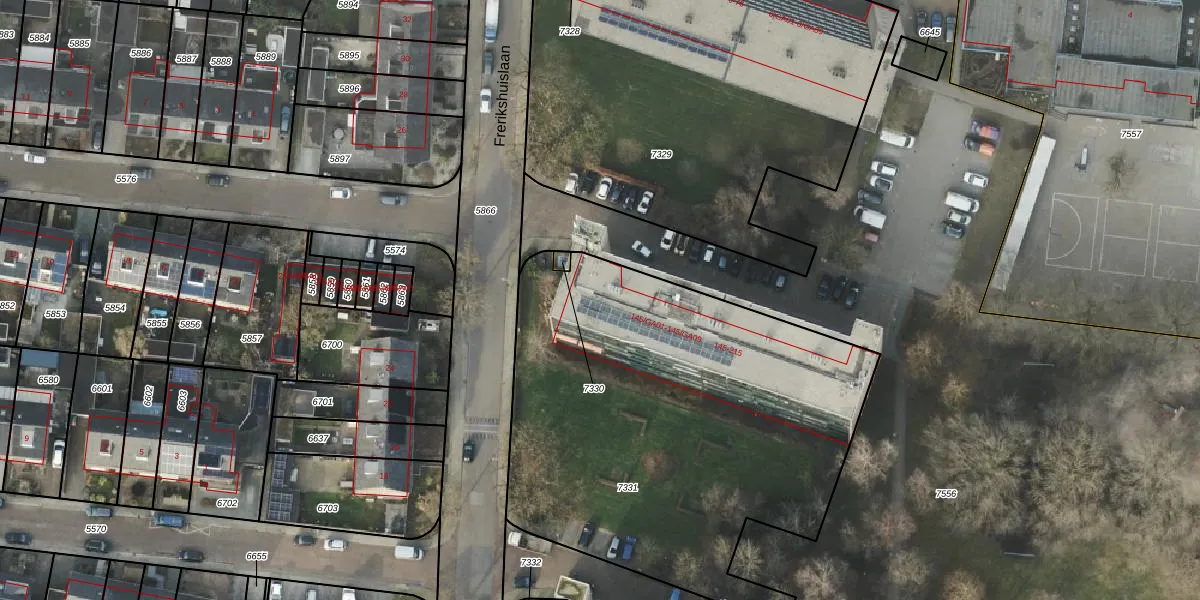 Frerikshuislaan 145 is gelegen op kadastraal perceel AML01A7331. Deze kadastrale aanduiding is uniek en wordt gebruikt door het Kadaster om eigendomsrechten en andere zakelijke rechten vast te leggen. Het perceel maakt onderdeel uit van de kadastrale gemeente Ambt-Almelo.