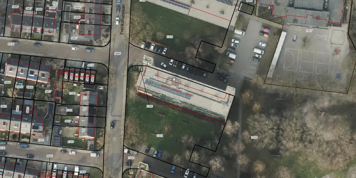 Het perceel waarop Frerikshuislaan 149 staat heeft een oppervlakte van 2561 m². Dit is een zeer groot perceel. De perceeloppervlakte wordt geregistreerd door het Kadaster. Gedetailleerde informatie over de maten van dit perceel kunt u vinden in het rapport Kadastrale kaart met maatvoering van Frerikshuislaan 149.