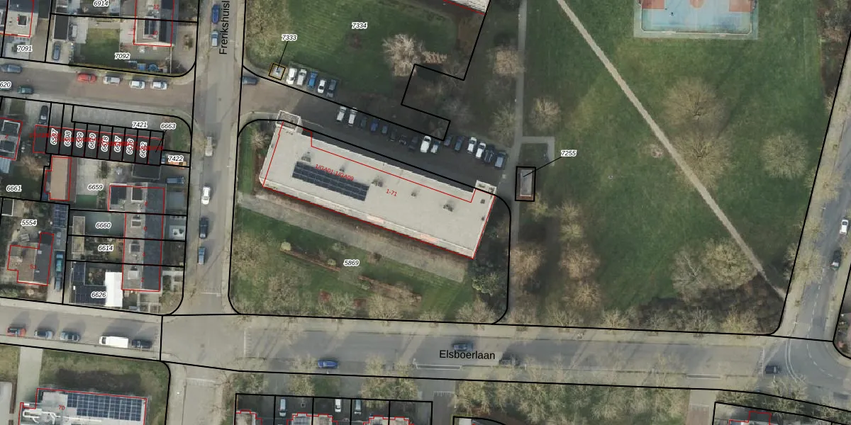 Frerikshuislaan 33 is gelegen op kadastraal perceel AML01A5869. Deze kadastrale aanduiding is uniek en wordt gebruikt door het Kadaster om eigendomsrechten en andere zakelijke rechten vast te leggen. Het perceel maakt onderdeel uit van de kadastrale gemeente Ambt-Almelo.