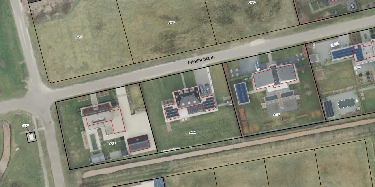 Het perceel waarop Friedhofflaan 3 staat heeft een oppervlakte van 1821 m². Dit is een zeer groot perceel. De perceeloppervlakte wordt geregistreerd door het Kadaster. Gedetailleerde informatie over de maten van dit perceel kunt u vinden in het rapport Kadastrale kaart met maatvoering van Friedhofflaan 3.