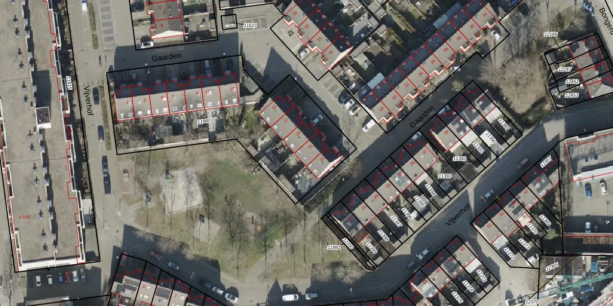 Het perceel waarop Gaarden 21 staat heeft een oppervlakte van 2088 m². Dit is een zeer groot perceel. De perceeloppervlakte wordt geregistreerd door het Kadaster. Gedetailleerde informatie over de maten van dit perceel kunt u vinden in het rapport Kadastrale kaart met maatvoering van Gaarden 21.