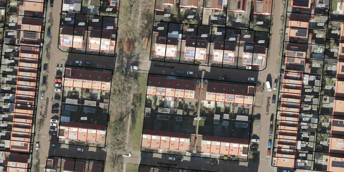 Ganzevoet 15 is gelegen op kadastraal perceel AML01G3947. Deze kadastrale aanduiding is uniek en wordt gebruikt door het Kadaster om eigendomsrechten en andere zakelijke rechten vast te leggen. Het perceel maakt onderdeel uit van de kadastrale gemeente Ambt-Almelo.