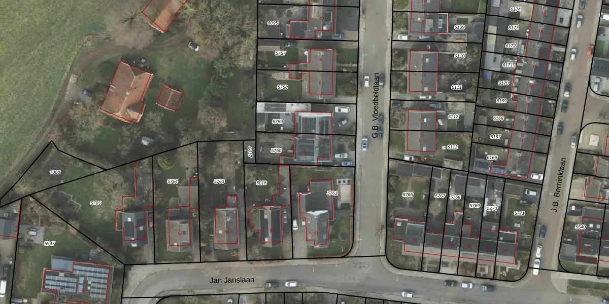 G.B. Vloedbeldlaan 2 is gelegen op kadastraal perceel AML01A5760. Deze kadastrale aanduiding is uniek en wordt gebruikt door het Kadaster om eigendomsrechten en andere zakelijke rechten vast te leggen. Het perceel maakt onderdeel uit van de kadastrale gemeente Ambt-Almelo.