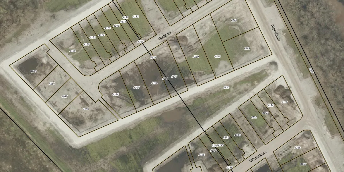 Het perceel waarop Gele lis 23 staat heeft een oppervlakte van 50 m². Dit is een klein perceel. De perceeloppervlakte wordt geregistreerd door het Kadaster. Gedetailleerde informatie over de maten van dit perceel kunt u vinden in het rapport Kadastrale kaart met maatvoering van Gele lis 23.