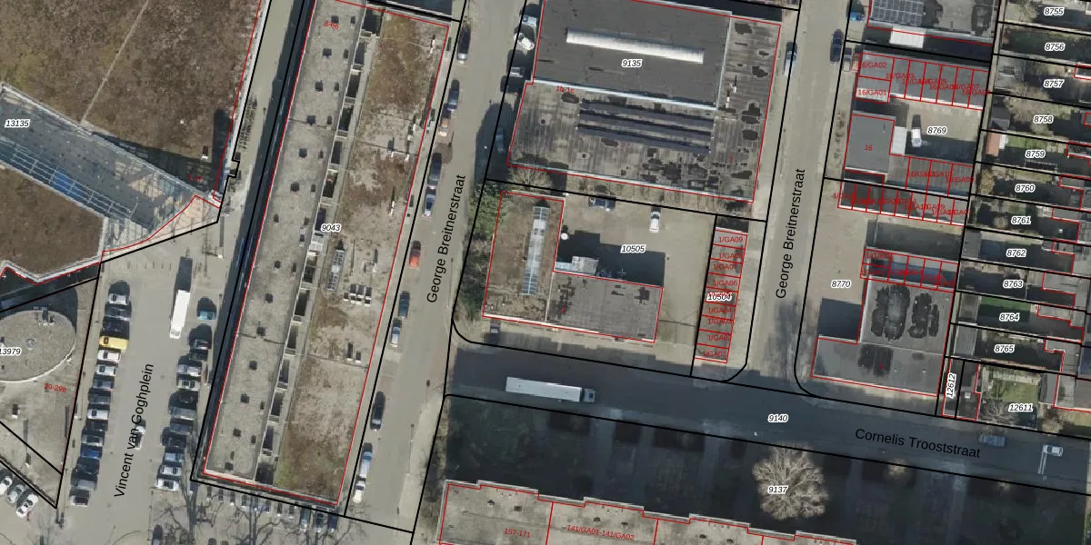 Het perceel waarop George Breitnerstraat 1 staat heeft een oppervlakte van 1324 m². Dit is een zeer groot perceel. De perceeloppervlakte wordt geregistreerd door het Kadaster. Gedetailleerde informatie over de maten van dit perceel kunt u vinden in het rapport Kadastrale kaart met maatvoering van George Breitnerstraat 1.