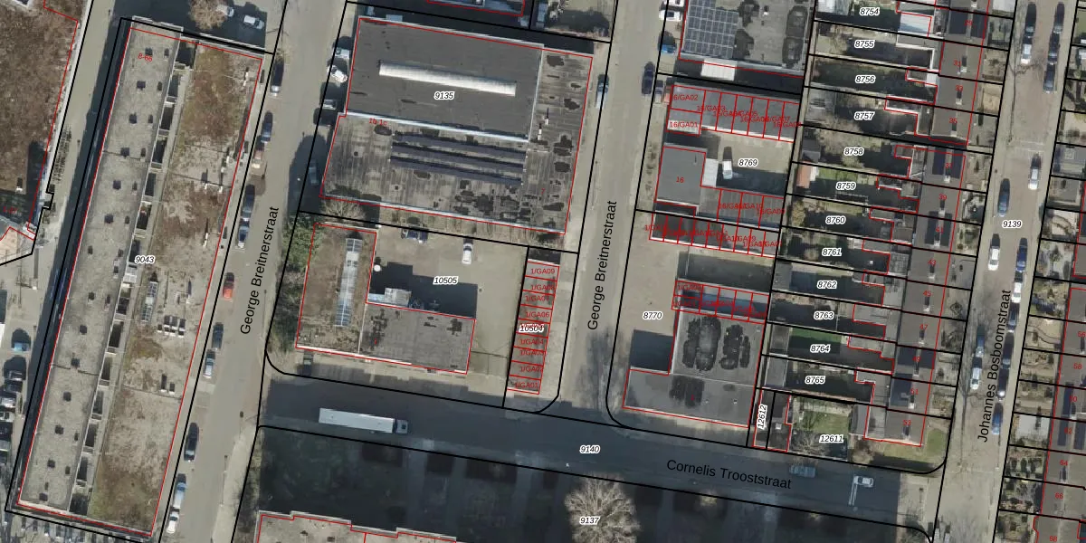George Breitnerstraat 1-GA09 is gelegen op kadastraal perceel AML01H10504. Deze kadastrale aanduiding is uniek en wordt gebruikt door het Kadaster om eigendomsrechten en andere zakelijke rechten vast te leggen. Het perceel maakt onderdeel uit van de kadastrale gemeente Ambt-Almelo.