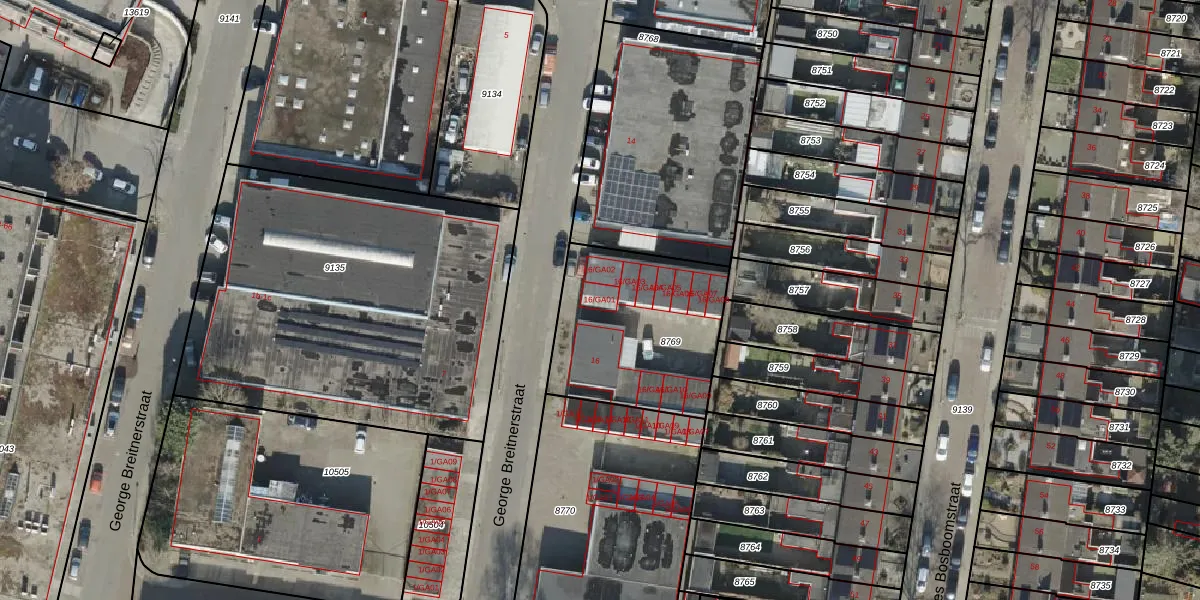 George Breitnerstraat 16-GA01 is gelegen op kadastraal perceel AML01H8769. Deze kadastrale aanduiding is uniek en wordt gebruikt door het Kadaster om eigendomsrechten en andere zakelijke rechten vast te leggen. Het perceel maakt onderdeel uit van de kadastrale gemeente Ambt-Almelo.