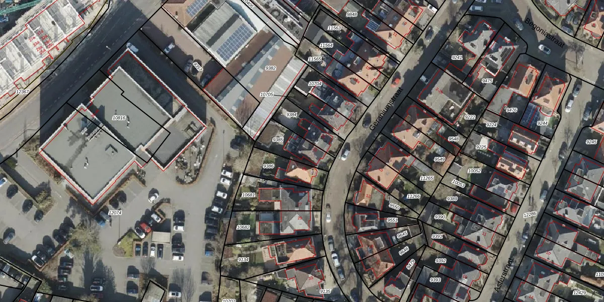 Geraniumstraat 23 is gelegen op kadastraal perceel AML02B9385. Deze kadastrale aanduiding is uniek en wordt gebruikt door het Kadaster om eigendomsrechten en andere zakelijke rechten vast te leggen. Het perceel maakt onderdeel uit van de kadastrale gemeente Stad-Almelo.