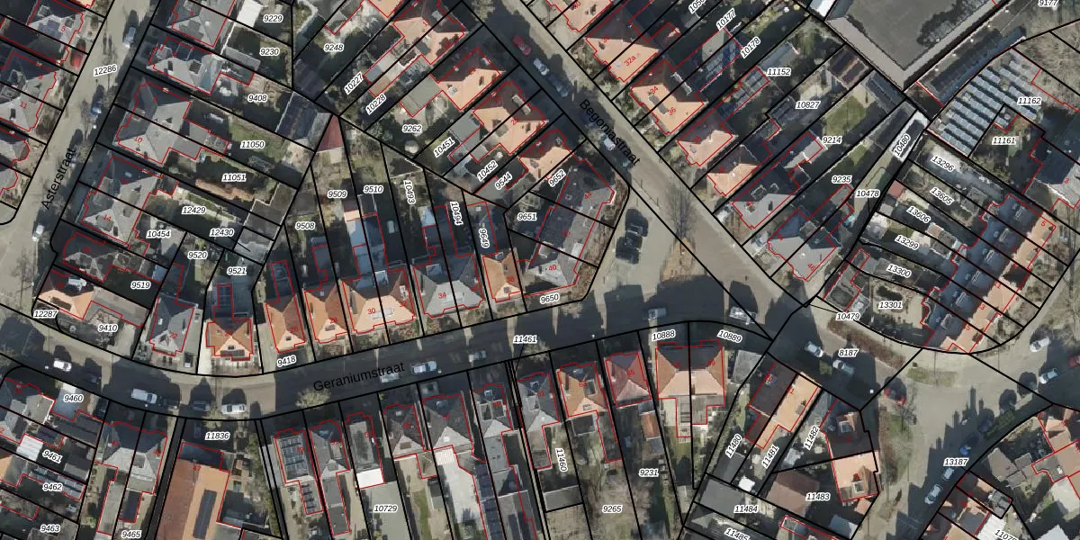 Geraniumstraat 40 is gelegen op kadastraal perceel AML02B9650. Deze kadastrale aanduiding is uniek en wordt gebruikt door het Kadaster om eigendomsrechten en andere zakelijke rechten vast te leggen. Het perceel maakt onderdeel uit van de kadastrale gemeente Stad-Almelo.