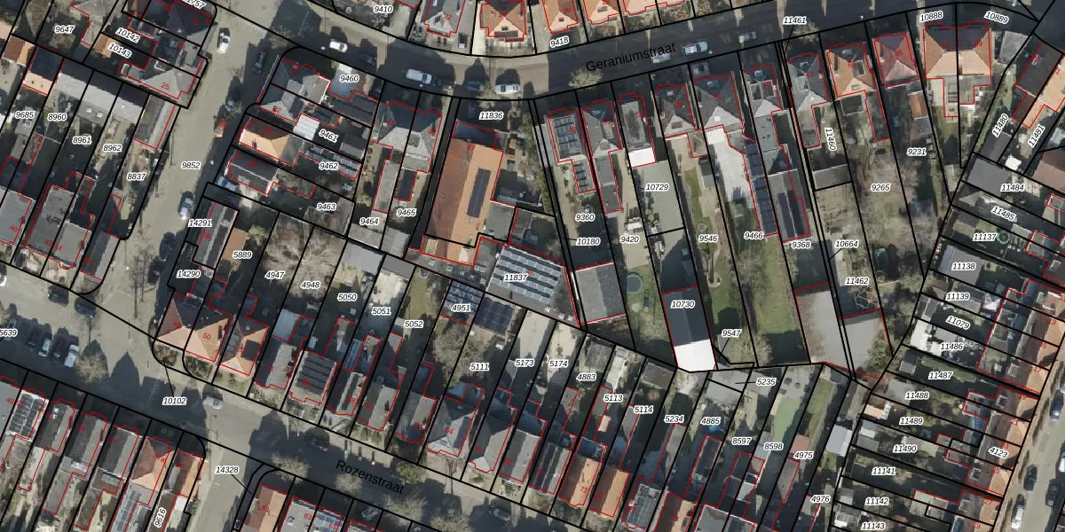 Het perceel waarop Geraniumstraat 45 staat heeft een oppervlakte van 398 m². Dit is een groot perceel. De perceeloppervlakte wordt geregistreerd door het Kadaster. Gedetailleerde informatie over de maten van dit perceel kunt u vinden in het rapport Kadastrale kaart met maatvoering van Geraniumstraat 45.