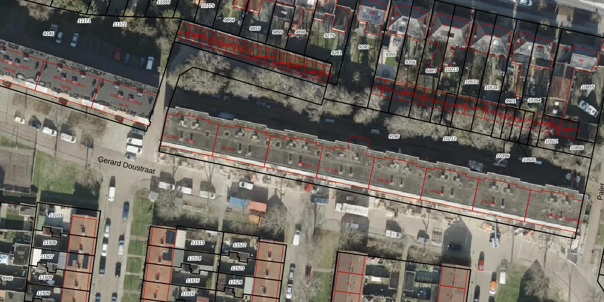 Het perceel waarop Gerard Doustraat 120 staat heeft een oppervlakte van 3940 m². Dit is een zeer groot perceel. De perceeloppervlakte wordt geregistreerd door het Kadaster. Gedetailleerde informatie over de maten van dit perceel kunt u vinden in het rapport Kadastrale kaart met maatvoering van Gerard Doustraat 120.