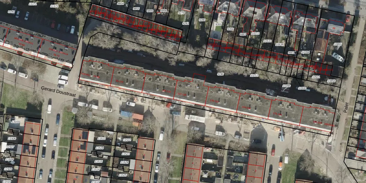 Het perceel waarop Gerard Doustraat 126 staat heeft een oppervlakte van 3940 m². Dit is een zeer groot perceel. De perceeloppervlakte wordt geregistreerd door het Kadaster. Gedetailleerde informatie over de maten van dit perceel kunt u vinden in het rapport Kadastrale kaart met maatvoering van Gerard Doustraat 126.