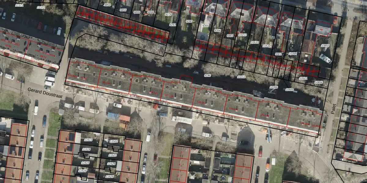 Het perceel waarop Gerard Doustraat 136 staat heeft een oppervlakte van 3940 m². Dit is een zeer groot perceel. De perceeloppervlakte wordt geregistreerd door het Kadaster. Gedetailleerde informatie over de maten van dit perceel kunt u vinden in het rapport Kadastrale kaart met maatvoering van Gerard Doustraat 136.
