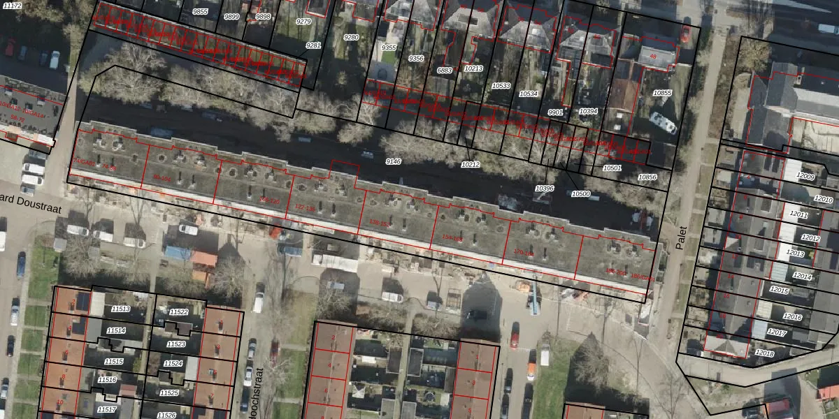 Het perceel waarop Gerard Doustraat 152 staat heeft een oppervlakte van 3940 m². Dit is een zeer groot perceel. De perceeloppervlakte wordt geregistreerd door het Kadaster. Gedetailleerde informatie over de maten van dit perceel kunt u vinden in het rapport Kadastrale kaart met maatvoering van Gerard Doustraat 152.