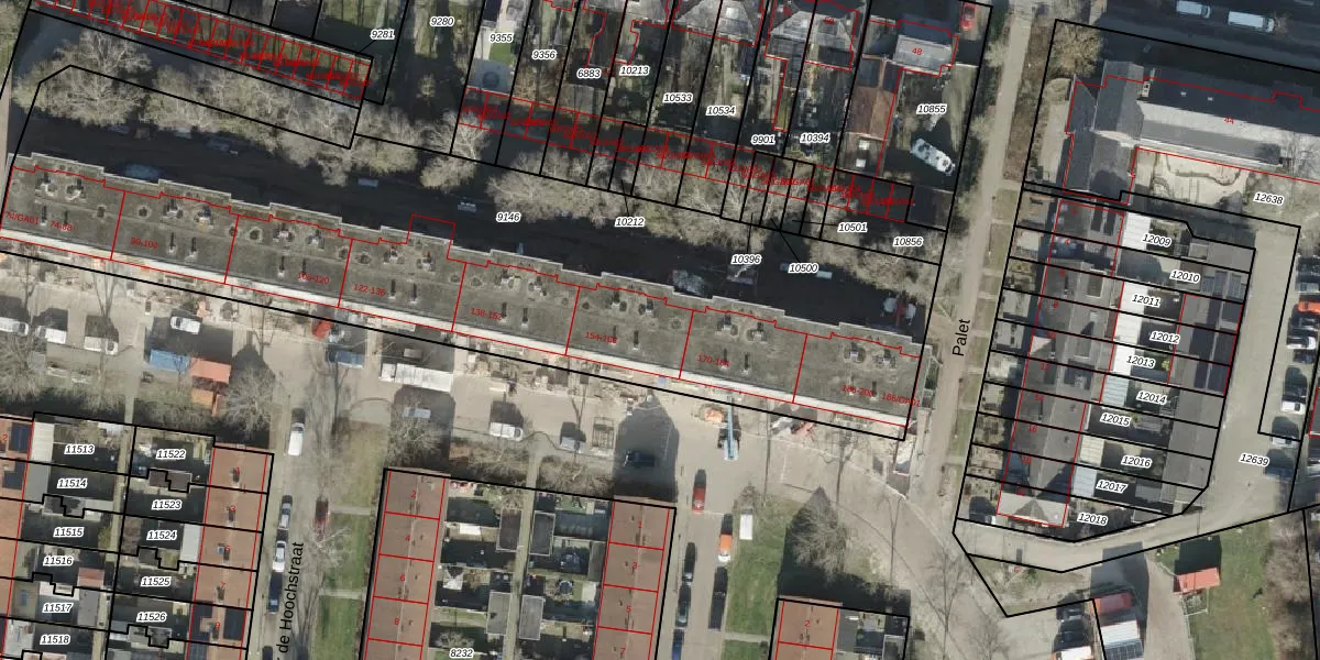 Het perceel waarop Gerard Doustraat 166 staat heeft een oppervlakte van 3940 m². Dit is een zeer groot perceel. De perceeloppervlakte wordt geregistreerd door het Kadaster. Gedetailleerde informatie over de maten van dit perceel kunt u vinden in het rapport Kadastrale kaart met maatvoering van Gerard Doustraat 166.
