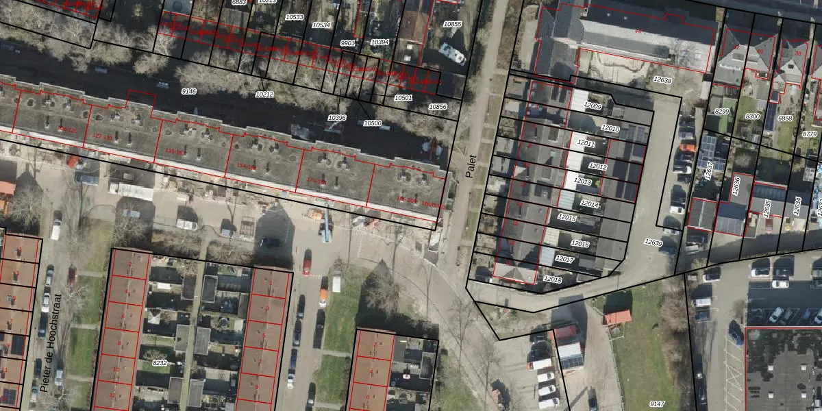 Het perceel waarop Gerard Doustraat 194 staat heeft een oppervlakte van 3940 m². Dit is een zeer groot perceel. De perceeloppervlakte wordt geregistreerd door het Kadaster. Gedetailleerde informatie over de maten van dit perceel kunt u vinden in het rapport Kadastrale kaart met maatvoering van Gerard Doustraat 194.
