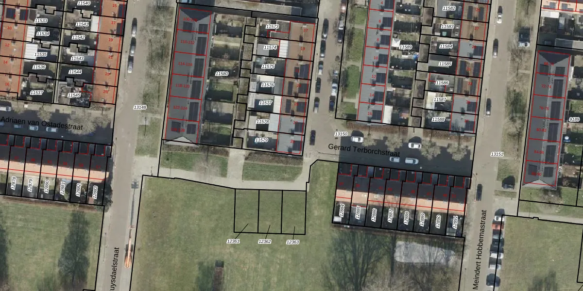 Het perceel waarop Gerard Terborchstraat 29 staat heeft een oppervlakte van 158 m². Dit is een middelgroot perceel. De perceeloppervlakte wordt geregistreerd door het Kadaster. Gedetailleerde informatie over de maten van dit perceel kunt u vinden in het rapport Kadastrale kaart met maatvoering van Gerard Terborchstraat 29.