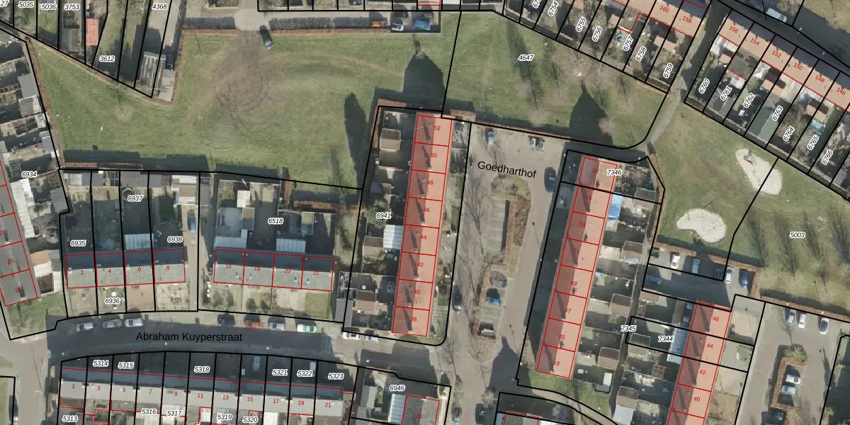 Goedharthof 46 is gelegen op kadastraal perceel AML01A6941. Deze kadastrale aanduiding is uniek en wordt gebruikt door het Kadaster om eigendomsrechten en andere zakelijke rechten vast te leggen. Het perceel maakt onderdeel uit van de kadastrale gemeente Ambt-Almelo.
