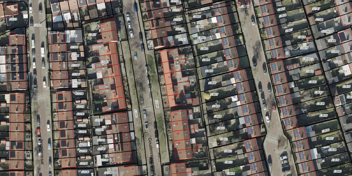 Het perceel waarop Goudenregenstraat 22 staat heeft een oppervlakte van 8447 m². Dit is een zeer groot perceel. De perceeloppervlakte wordt geregistreerd door het Kadaster. Gedetailleerde informatie over de maten van dit perceel kunt u vinden in het rapport Kadastrale kaart met maatvoering van Goudenregenstraat 22.