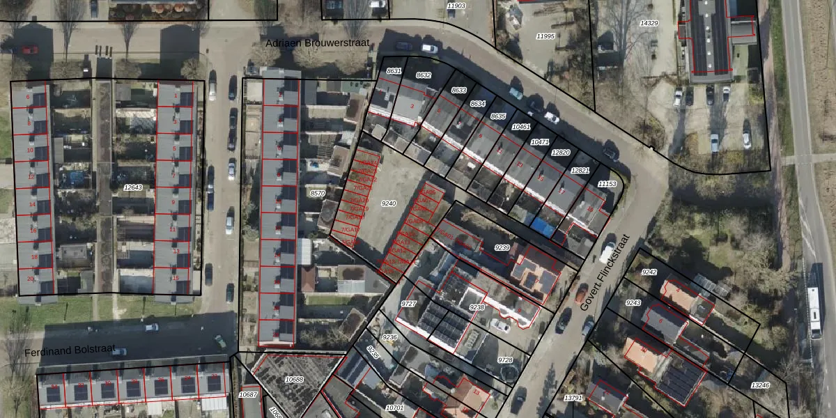 Govert Flinckstraat 7-GA08 is gelegen op kadastraal perceel AML01H9240. Deze kadastrale aanduiding is uniek en wordt gebruikt door het Kadaster om eigendomsrechten en andere zakelijke rechten vast te leggen. Het perceel maakt onderdeel uit van de kadastrale gemeente Ambt-Almelo.