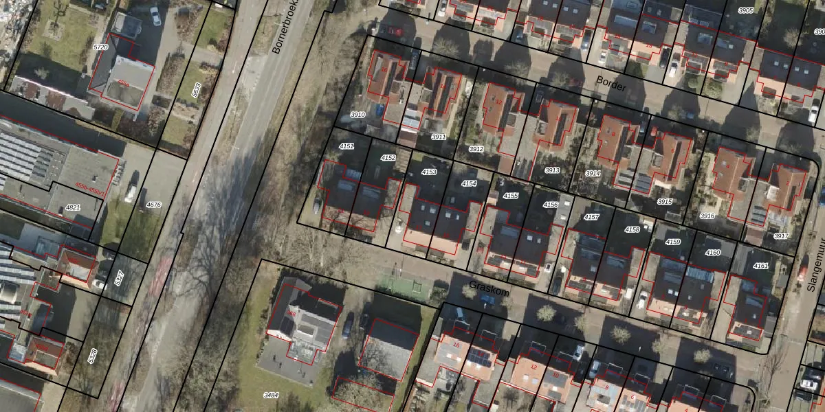 Gebruik de zoekbalk of klik op een perceel voor informatie over de adressen binnen dit perceel.