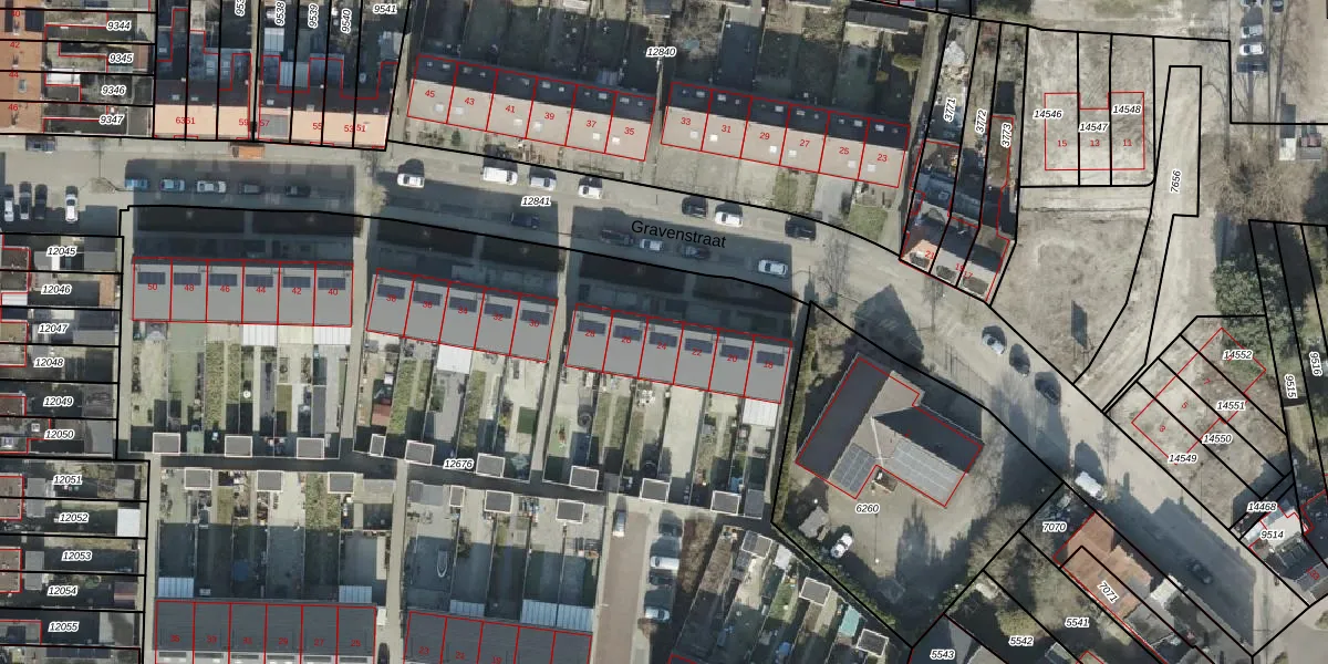 Het perceel waarop Gravenstraat 24 staat heeft een oppervlakte van 7945 m². Dit is een zeer groot perceel. De perceeloppervlakte wordt geregistreerd door het Kadaster. Gedetailleerde informatie over de maten van dit perceel kunt u vinden in het rapport Kadastrale kaart met maatvoering van Gravenstraat 24.