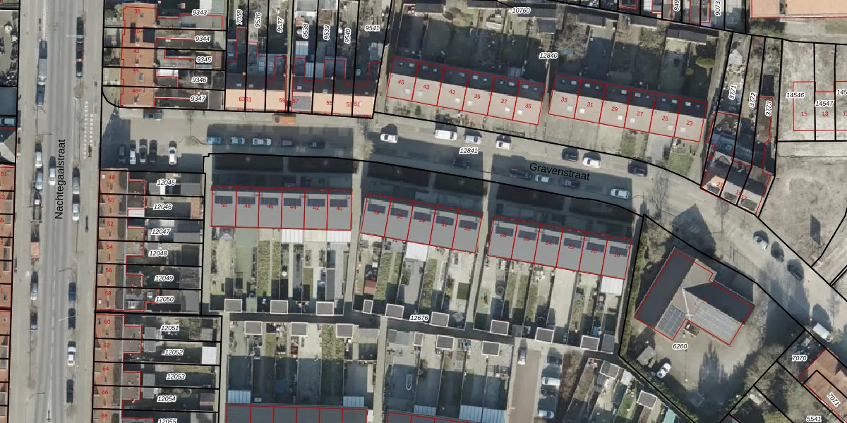 Het perceel waarop Gravenstraat 34 staat heeft een oppervlakte van 7945 m². Dit is een zeer groot perceel. De perceeloppervlakte wordt geregistreerd door het Kadaster. Gedetailleerde informatie over de maten van dit perceel kunt u vinden in het rapport Kadastrale kaart met maatvoering van Gravenstraat 34.