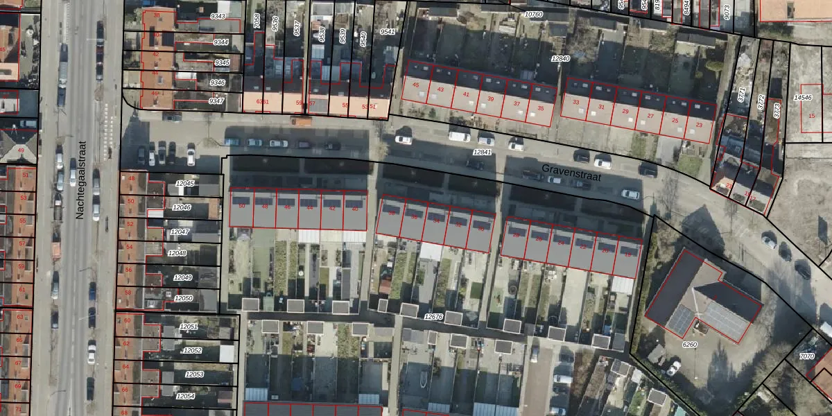 Het perceel waarop Gravenstraat 36 staat heeft een oppervlakte van 7945 m². Dit is een zeer groot perceel. De perceeloppervlakte wordt geregistreerd door het Kadaster. Gedetailleerde informatie over de maten van dit perceel kunt u vinden in het rapport Kadastrale kaart met maatvoering van Gravenstraat 36.