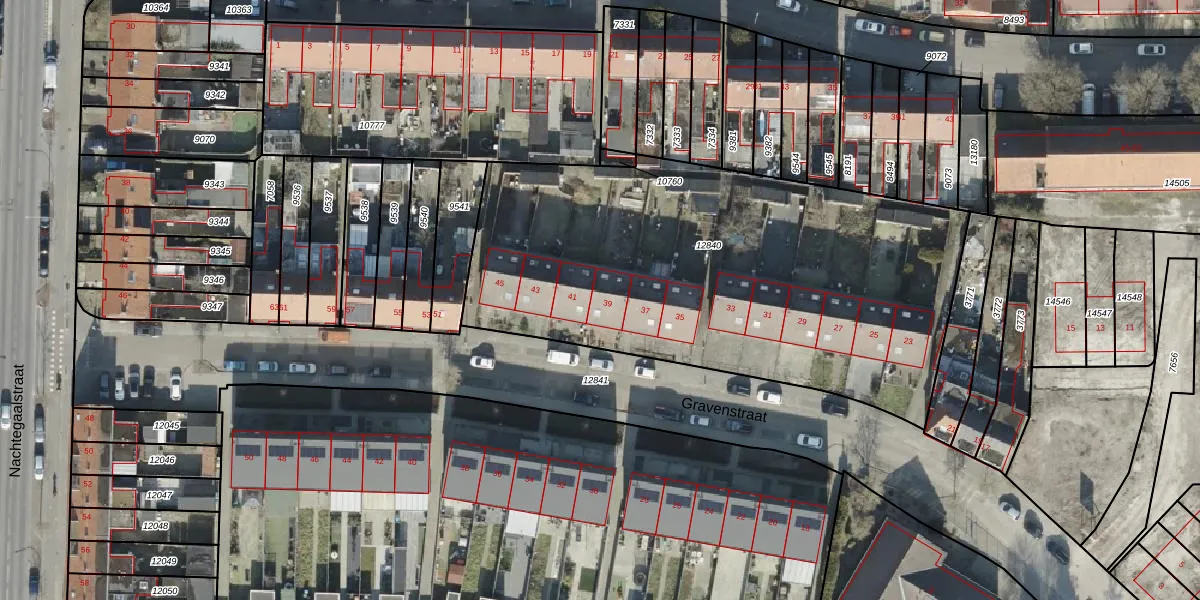Het perceel waarop Gravenstraat 39 staat heeft een oppervlakte van 2610 m². Dit is een zeer groot perceel. De perceeloppervlakte wordt geregistreerd door het Kadaster. Gedetailleerde informatie over de maten van dit perceel kunt u vinden in het rapport Kadastrale kaart met maatvoering van Gravenstraat 39.