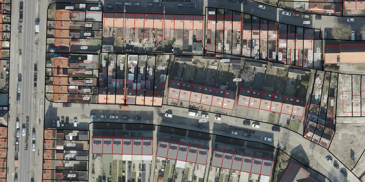 Het perceel waarop Gravenstraat 43 staat heeft een oppervlakte van 2610 m². Dit is een zeer groot perceel. De perceeloppervlakte wordt geregistreerd door het Kadaster. Gedetailleerde informatie over de maten van dit perceel kunt u vinden in het rapport Kadastrale kaart met maatvoering van Gravenstraat 43.