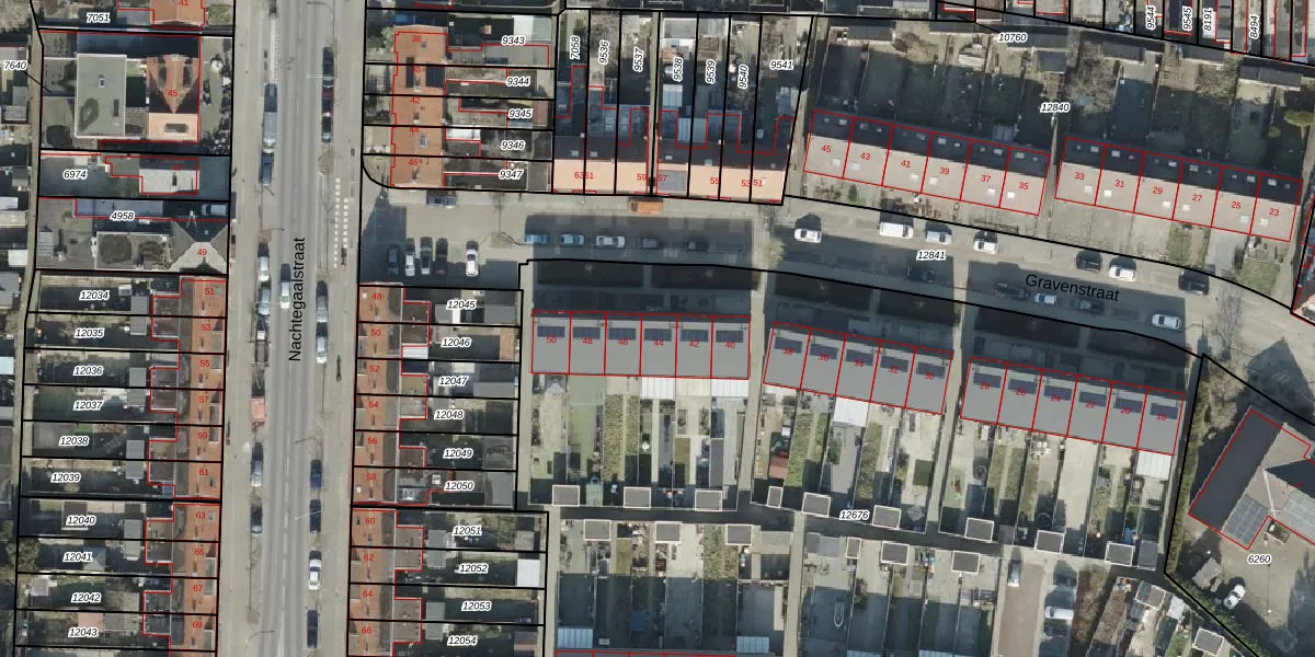 Het perceel waarop Gravenstraat 44 staat heeft een oppervlakte van 7945 m². Dit is een zeer groot perceel. De perceeloppervlakte wordt geregistreerd door het Kadaster. Gedetailleerde informatie over de maten van dit perceel kunt u vinden in het rapport Kadastrale kaart met maatvoering van Gravenstraat 44.
