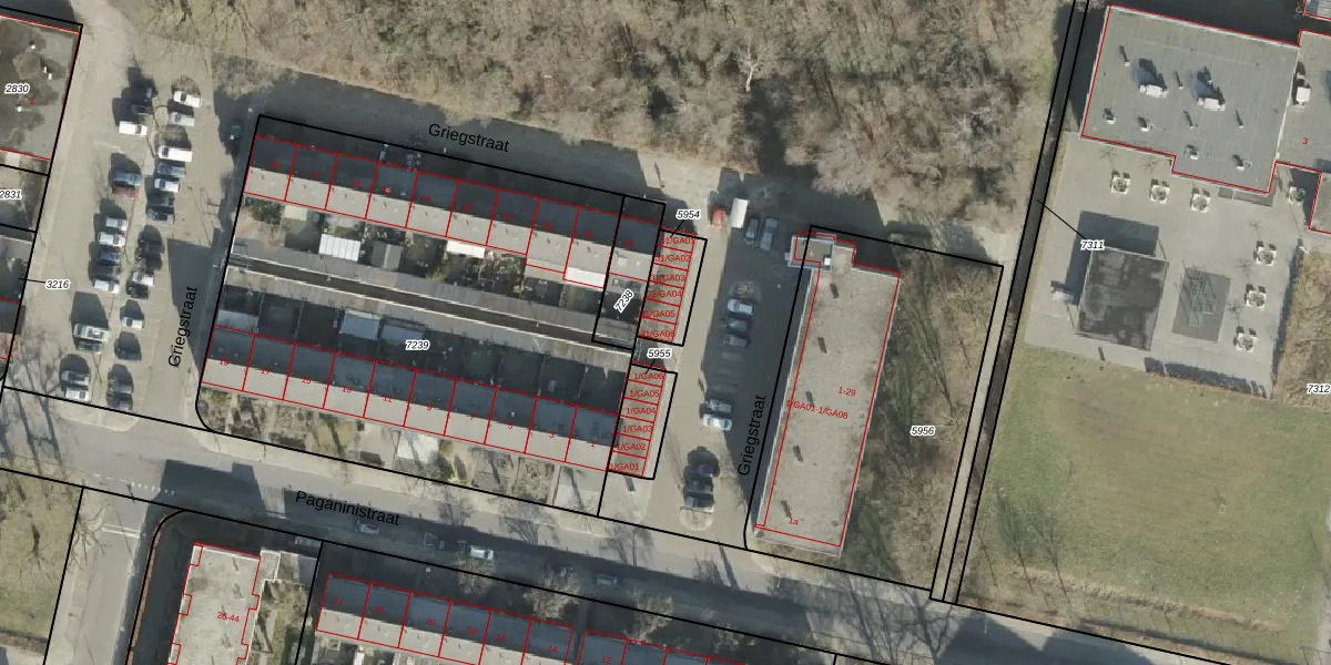 Griegstraat 31-GA06 is gelegen op kadastraal perceel AML01A5954. Deze kadastrale aanduiding is uniek en wordt gebruikt door het Kadaster om eigendomsrechten en andere zakelijke rechten vast te leggen. Het perceel maakt onderdeel uit van de kadastrale gemeente Ambt-Almelo.