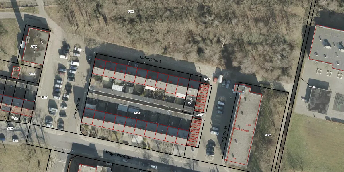 Het perceel waarop Griegstraat 35 staat heeft een oppervlakte van 2870 m². Dit is een zeer groot perceel. De perceeloppervlakte wordt geregistreerd door het Kadaster. Gedetailleerde informatie over de maten van dit perceel kunt u vinden in het rapport Kadastrale kaart met maatvoering van Griegstraat 35.