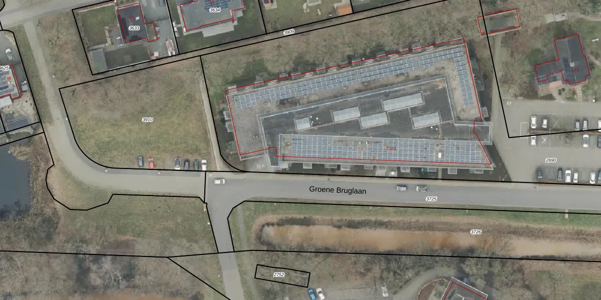 Groene Bruglaan 13 is gelegen op kadastraal perceel AML01K2690. Deze kadastrale aanduiding is uniek en wordt gebruikt door het Kadaster om eigendomsrechten en andere zakelijke rechten vast te leggen. Het perceel maakt onderdeel uit van de kadastrale gemeente Ambt-Almelo.