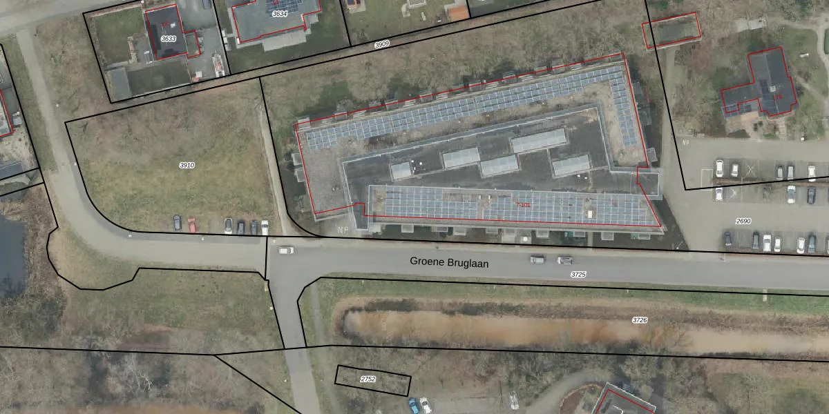 Het perceel waarop Groene Bruglaan 15 staat heeft een oppervlakte van 6100 m². Dit is een zeer groot perceel. De perceeloppervlakte wordt geregistreerd door het Kadaster. Gedetailleerde informatie over de maten van dit perceel kunt u vinden in het rapport Kadastrale kaart met maatvoering van Groene Bruglaan 15.