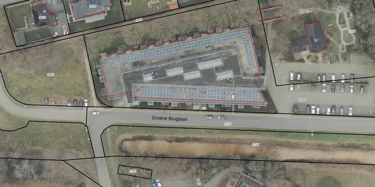 Het perceel waarop Groene Bruglaan 23 staat heeft een oppervlakte van 6100 m². Dit is een zeer groot perceel. De perceeloppervlakte wordt geregistreerd door het Kadaster. Gedetailleerde informatie over de maten van dit perceel kunt u vinden in het rapport Kadastrale kaart met maatvoering van Groene Bruglaan 23.