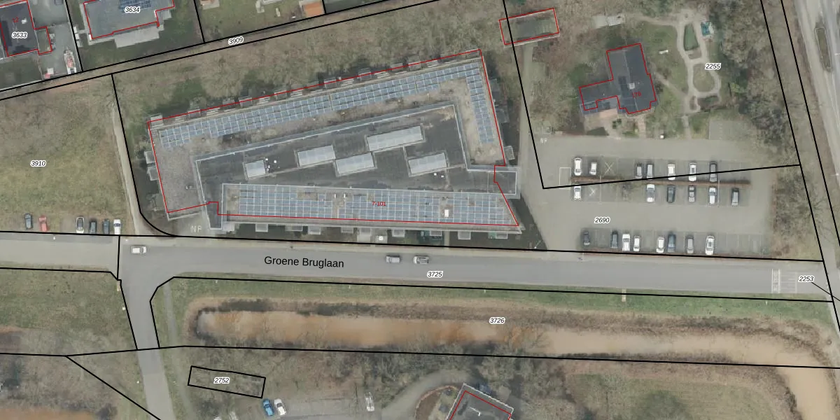 Het perceel waarop Groene Bruglaan 31 staat heeft een oppervlakte van 6100 m². Dit is een zeer groot perceel. De perceeloppervlakte wordt geregistreerd door het Kadaster. Gedetailleerde informatie over de maten van dit perceel kunt u vinden in het rapport Kadastrale kaart met maatvoering van Groene Bruglaan 31.