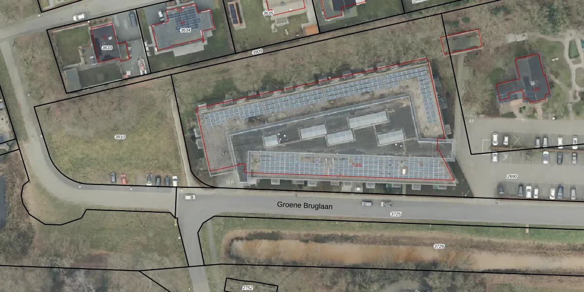 Het perceel waarop Groene Bruglaan 49 staat heeft een oppervlakte van 6100 m². Dit is een zeer groot perceel. De perceeloppervlakte wordt geregistreerd door het Kadaster. Gedetailleerde informatie over de maten van dit perceel kunt u vinden in het rapport Kadastrale kaart met maatvoering van Groene Bruglaan 49.